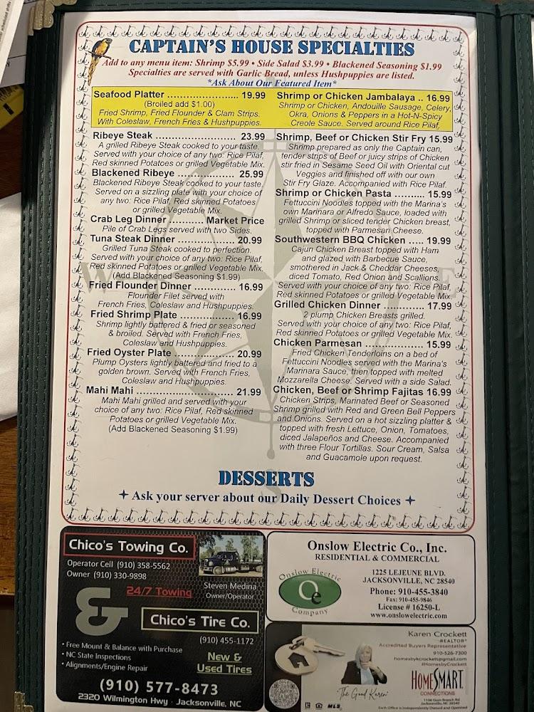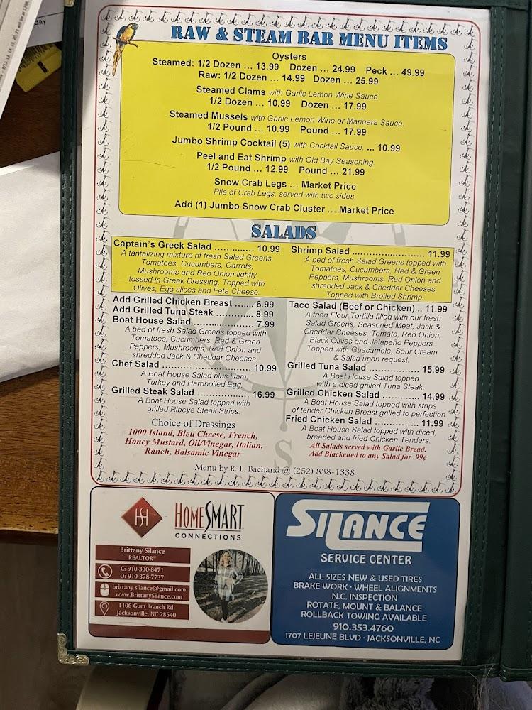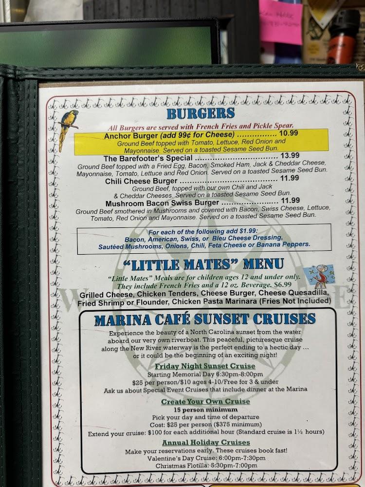 Welcome to Capt. Bob Beck's Marina Cafe, your premier destination for casual American dining in Jacksonville, NC. Enjoy a diverse menu featuring mouthwatering steaks, fresh seafood, crisp salads, hearty burgers, and delicious sandwiches—all while soaking in stunning waterfront views from our outdoor dining area. Perfect for families and pets, our cafe also offers private rooms for meetings and celebrations. Indulge in excellent cocktails and desserts, with options for vegetarians and quick bites. Accessible facilities ensure everyone can join the fun. Experience relaxed dining with prompt service, all at an affordable price range. Come visit us today!